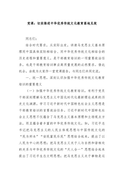 / 【七哥公文】2024年:党课:切实推进中华优秀传统文化教育落地见效+更多免费公文+VX:QiGeGongWen2024
