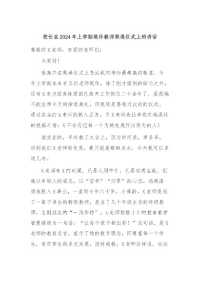 / 【七哥公文】2024年:校长在2024年上学期退休教师荣退仪式上的讲话+更多免费公文+VX:QiGeGongWen2024