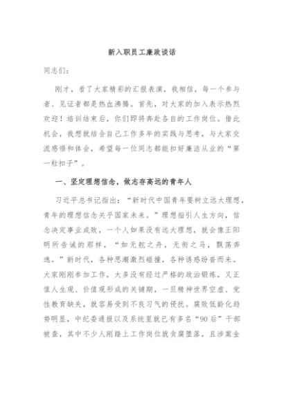 / 【七哥公文】2024年:新入职员工廉政谈话+更多免费公文+VX:QiGeGongWen2024