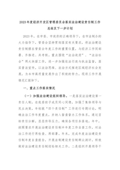 【七哥公文】2024年:2023年度经济开发区管理委员会落实法治建设责任制工作总结及下一步计划+更多免费公文+VX:QiGeGongWen2024