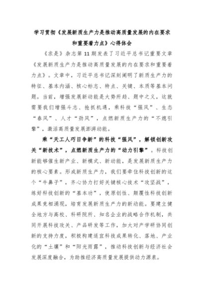 【七哥公文】2024年:学习贯彻《发展新质生产力是推动高质量发展的内在要求和重要着力点》心得体会+更多免费公文+VX:QiGeGongWen2024
