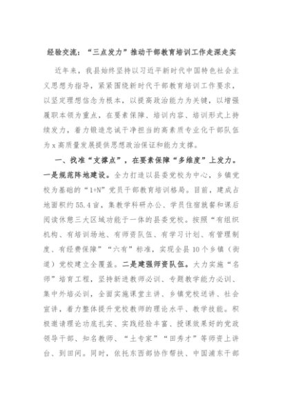 【七哥公文】2024年:经验交流:“三点发力”推动干部教育培训工作走深走实+更多免费公文+VX:QiGeGongWen2024