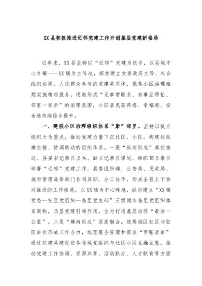 / 【七哥公文】2024年:XX县积极推进近邻党建工作开创基层党建新格局+更多免费公文+VX:QiGeGongWen2024
