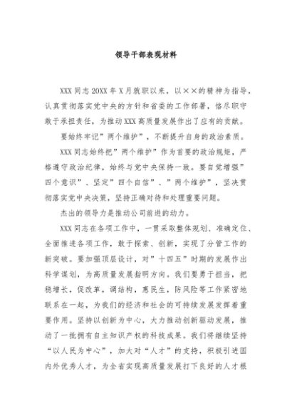 【七哥公文】2024年:领导干部表现材料+更多免费公文+VX:QiGeGongWen2024
