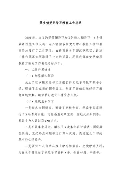 / 【七哥公文】2024年:某乡镇党纪学习教育工作总结+更多免费公文+VX:QiGeGongWen2024