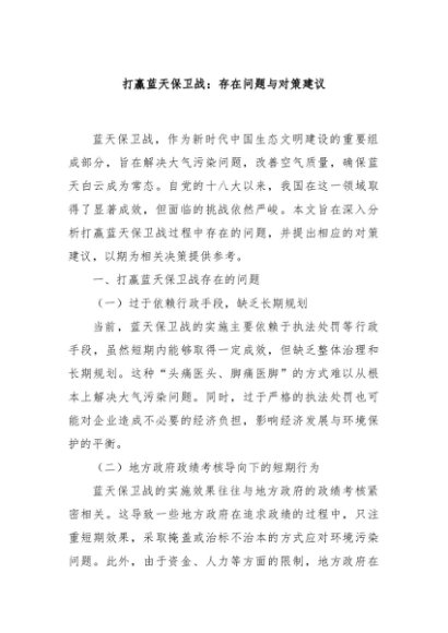 / 【七哥公文】2024年:打赢蓝天保卫战:存在问题与对策建议+更多免费公文+VX:QiGeGongWen2024