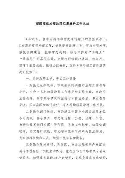 / 【七哥公文】2024年:超限超载治超治理汇报材料工作总结+更多免费公文+VX:QiGeGongWen2024