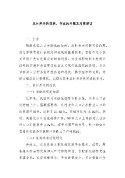 / 【七哥公文】2024年:农村养老的现状、存在的问题及对策建议+更多免费公文+VX:QiGeGongWen2024