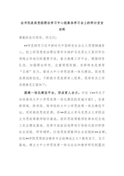 【七哥公文】2024年:在市民政局党组理论学习中心组集体学习会上的研讨发言材料+更多免费公文+VX:QiGeGongWen2024