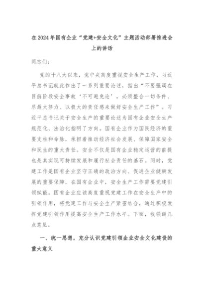 【七哥公文】2024年:在2024年国有企业“党建+安全文化”主题活动部署推进会上的讲话+更多免费公文+VX:QiGeGongWen2024