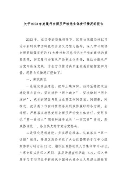 【七哥公文】2024年:关于2023年度履行全面从严治党主体责任情况的报告+更多免费公文+VX:QiGeGongWen2024