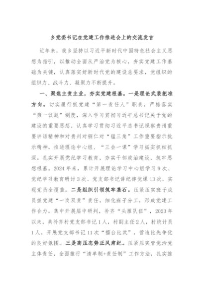 / 【七哥公文】2024年:乡党委书记在党建工作推进会上的交流发言+更多免费公文+VX:QiGeGongWen2024