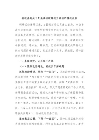 / 【七哥公文】2024年:县税务局关于开展调研破题提升活动的情况报告+更多免费公文+VX:QiGeGongWen2024