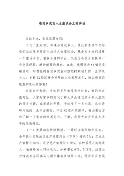 / 【七哥公文】2024年:在返乡成功人士座谈会上的讲话+更多免费公文+VX:QiGeGongWen2024
