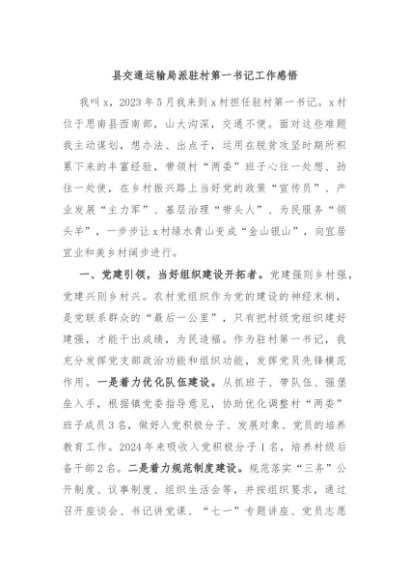 / 【七哥公文】2024年:县交通运输局派驻村第一书记工作感悟+更多免费公文+VX:QiGeGongWen2024