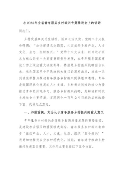 【七哥公文】2024年:在2024年全省青年服务乡村振兴专题推进会上的讲话+更多免费公文+VX:QiGeGongWen2024