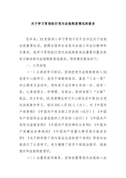 / 【七哥公文】2024年:关于学习贯彻执行党内法规制度情况的报告+更多免费公文+VX:QiGeGongWen2024