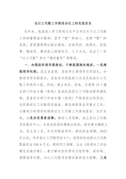 / 【七哥公文】2024年:在以工代赈工作推进会议上的交流发言+更多免费公文+VX:QiGeGongWen2024