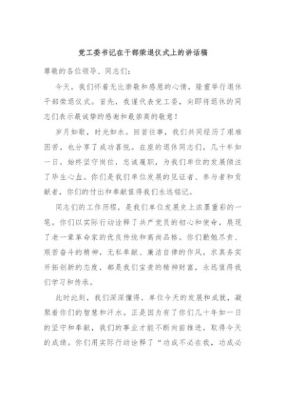 / 【七哥公文】2024年:党工委书记在干部荣退仪式上的讲话稿+更多免费公文+VX:QiGeGongWen2024