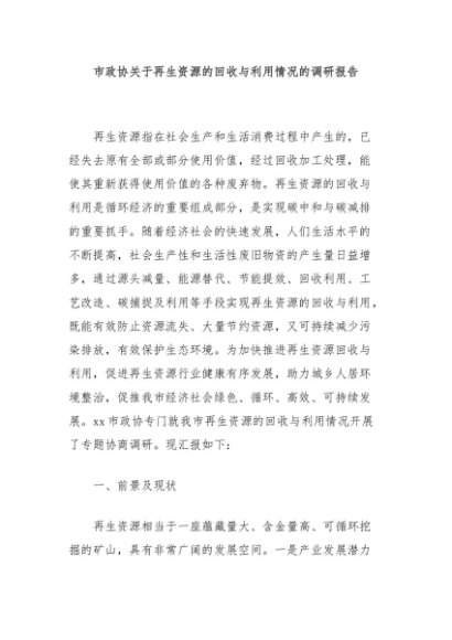 【七哥公文】2024年:市政协关于再生资源的回收与利用情况的调研报告+更多免费公文+VX:QiGeGongWen2024