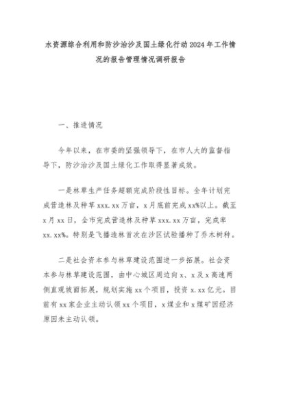 【七哥公文】2024年:水资源综合利用和防沙治沙及国土绿化行动2024年工作情况的报告管理情况调研报告+更多免费公文+VX:QiGeGongWen2024