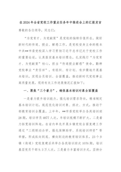 【七哥公文】2024年:在2024年全省党校工作重点任务年中推进会上的汇报发言+更多免费公文+VX:QiGeGongWen2024