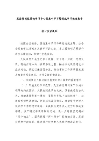 【七哥公文】2024年:某法院党组理论学习中心组集中学习暨党纪学习教育集中研讨发言提纲+更多免费公文+VX:QiGeGongWen2024