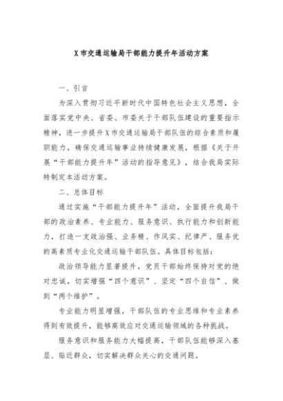 / 【七哥公文】2024年:X市交通运输局干部能力提升年活动方案+更多免费公文+VX:QiGeGongWen2024