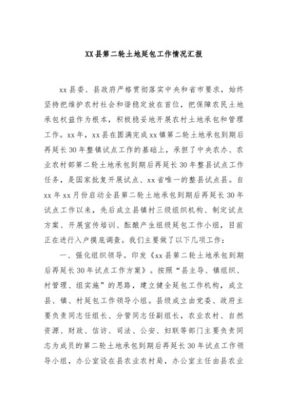 【七哥公文】2024年:XX县第二轮土地延包工作情况汇报+更多免费公文+VX:QiGeGongWen2024