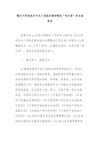 【七哥公文】2024年:镇关于贯彻执行中央八项规定精神情况“回头看”的自查报告+更多免费公文+VX:QiGeGongWen2024