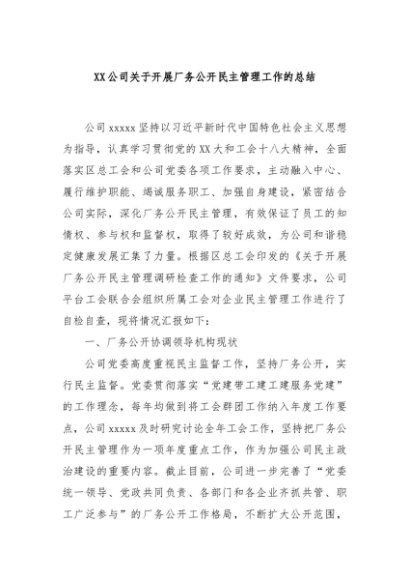 / 【七哥公文】2024年:XX公司关于开展厂务公开民主管理工作的总结+更多免费公文+VX:QiGeGongWen2024