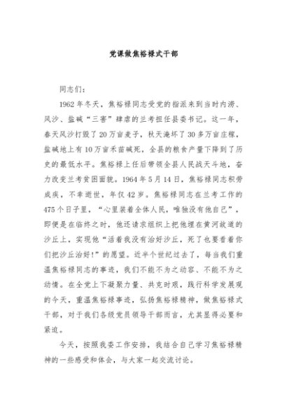 / 【七哥公文】2024年:党课做焦裕禄式干部+更多免费公文+VX:QiGeGongWen2024
