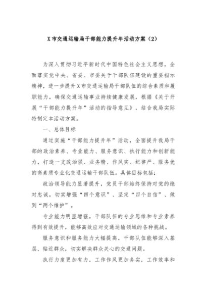 / 【七哥公文】2024年:X市交通运输局干部能力提升年活动方案(2)+更多免费公文+VX:QiGeGongWen2024