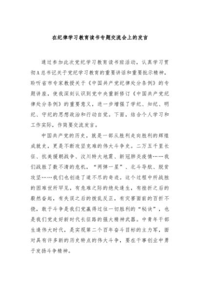 / 【七哥公文】2024年:在纪律学习教育读书专题交流会上的发言+更多免费公文+VX:QiGeGongWen2024