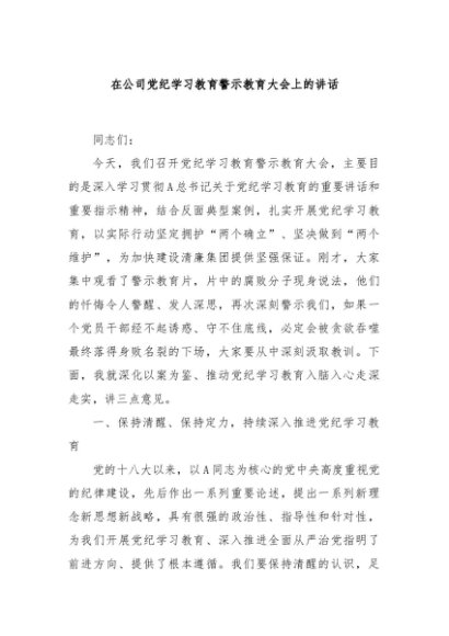 / 【七哥公文】2024年:在公司党纪学习教育警示教育大会上的讲话+更多免费公文+VX:QiGeGongWen2024