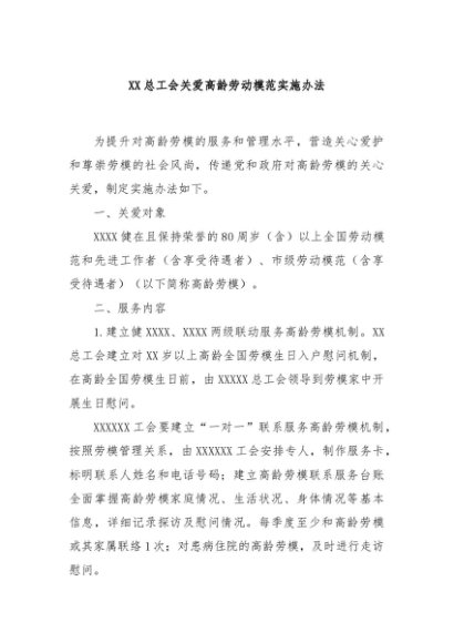 / 【七哥公文】2024年:XX总工会关爱高龄劳动模范实施办法+更多免费公文+VX:QiGeGongWen2024