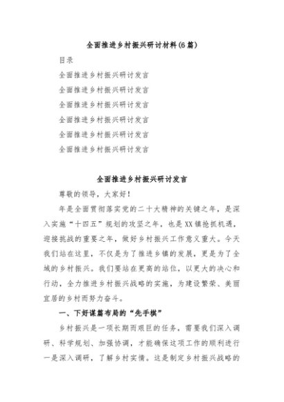 / 【七哥公文】2024年:(6篇)全面推进乡村振兴研讨材料+更多免费公文+VX:QiGeGongWen2024