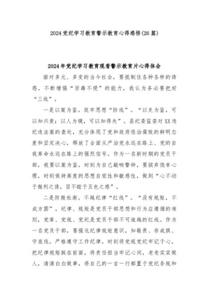 / 【七哥公文】2024年:(26篇)2024党纪学习教育警示教育心得感悟+更多免费公文+VX:QiGeGongWen2024