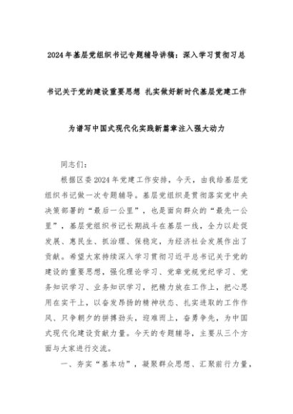 【七哥公文】2024年:2024年基层党组织书记专题辅导讲稿:深入学习贯彻习总书记关于党的建设重要思想 扎实做好新时代基层党建工作 为谱写中国式现代化实践新篇章注入强大动力+更多免费公文+VX:QiGeGongWen2024