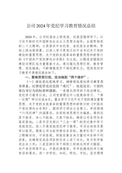 / 【七哥公文】2024年:公司2024年党纪学习教育情况总结+更多免费公文+VX:QiGeGongWen2024