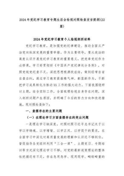 【七哥公文】2024年:(22篇)2024年党纪学习教育专题生活会检视对照检查发言提纲+更多免费公文+VX:QiGeGongWen2024