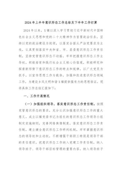/ 【七哥公文】2024年:2024年上半年意识形态工作总结及下半年工作打算+更多免费公文+VX:QiGeGongWen2024