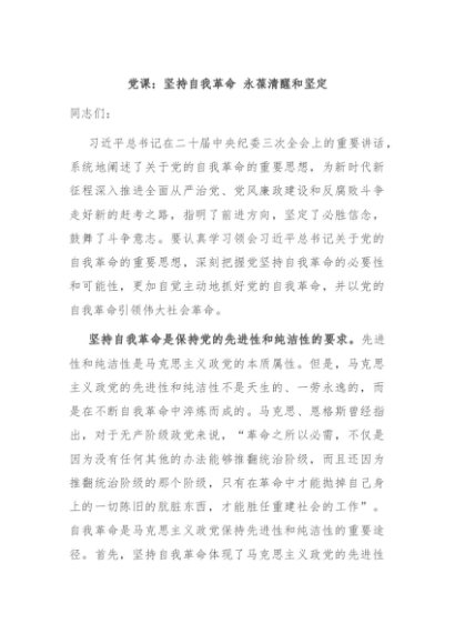 / 【七哥公文】2024年:党课:坚持自我革命 永葆清醒和坚定+更多免费公文+VX:QiGeGongWen2024