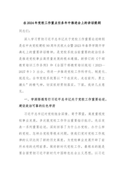 【七哥公文】2024年:在2024年党校工作重点任务年中推进会上的讲话提纲+更多免费公文+VX:QiGeGongWen2024