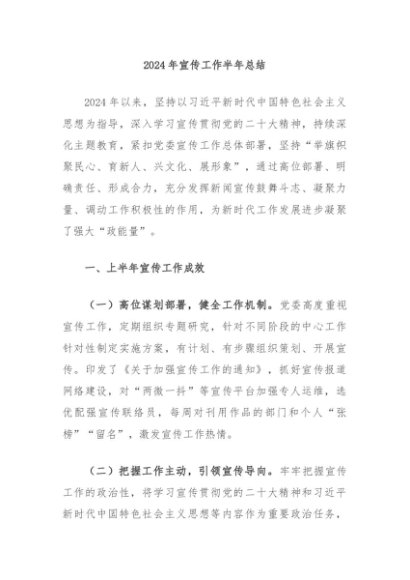 / 【七哥公文】2024年:2024年宣传工作半年总结+更多免费公文+VX:QiGeGongWen2024
