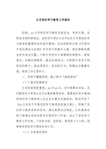 / 【七哥公文】2024年:公司党纪学习教育工作报告+更多免费公文+VX:QiGeGongWen2024