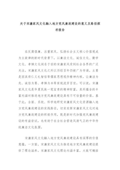 【七哥公文】2024年:关于宋濂家风文化融入地方党风廉政建设的意义及路径探析报告+更多免费公文+VX:QiGeGongWen2024