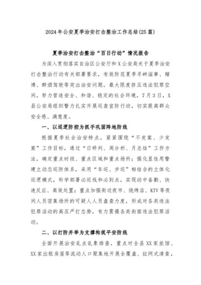 / 【七哥公文】2024年:(25篇)2024年公安夏季治安打击整治工作总结+更多免费公文+VX:QiGeGongWen2024