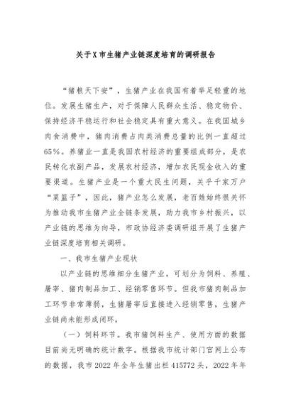 / 【七哥公文】2024年:关于X市生猪产业链深度培育的调研报告+更多免费公文+VX:QiGeGongWen2024