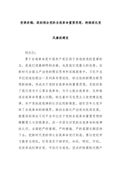 【七哥公文】2024年:党课讲稿:深刻领会党的自我革命重要思想,持续深化党风廉政建设+更多免费公文+VX:QiGeGongWen2024